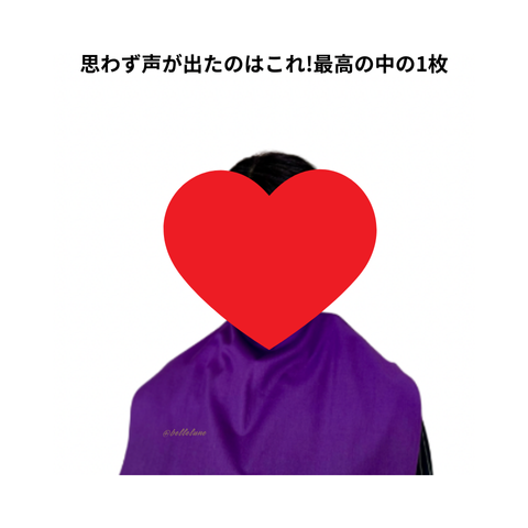 特に深いロイヤルパープルのドレープをあてた瞬間、お顔の輪郭がキュッと引き締まり、クールな輝きがグッと増したのです。まさに、女優のようなオーラでした。