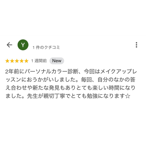 N様は2年前にご紹介でパーソナルカラー診断を受けてくださったリピーター様。