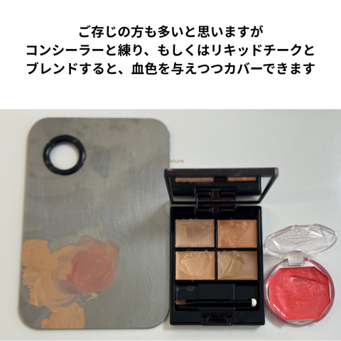 シミやクマには、ちょっと濃い目のコンシーラーや濃いオレンジが必要なのです。
