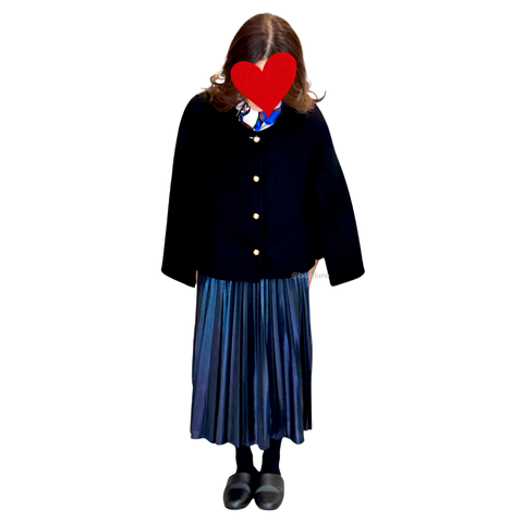 フワフワのモヘアのトップスに光沢の美しいプリーツスカート。質感の違いもおしゃれ!とにかく雰囲気(ムード)があるのです。